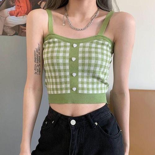 여성용 멀티컬러 데일리 뜨개탑 세미크롭그리드패턴 예쁜 민소매 WFJIWVY