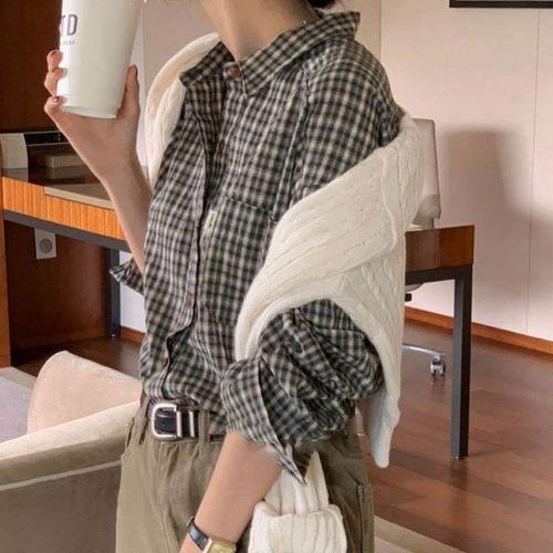 긴팔 오버핏 체크 셔츠 루즈핏 남방 블라우스 캐주얼 빈티지 티셔츠 봄 가을 간절기 편안한 예쁜 글로벌와이