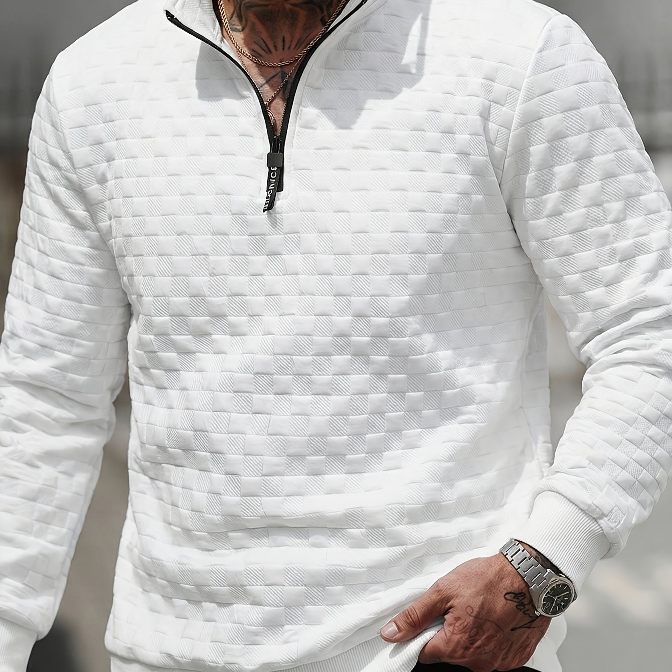 TEMU 남성 니트 풀오버 | 긴소매, 하이넥, 지퍼 디테일, 기하학적 패턴, 가을/겨울 레귤러 핏