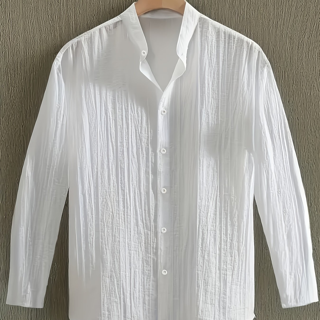 TEMU 남성용 솔리드 컬러 긴팔 셔츠, 턴넥, 버튼업, 슬림핏, 비즈니스 캐주얼