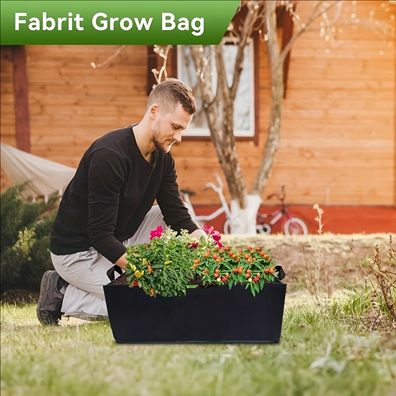 TEMU 손잡이 달린 식물 재배 가방, 튼튼한 검정색 직사각형 원단 재배 상자, 야채, 감자, 양파 재배에 적합, 내구성이 뛰어나고 통기성이 좋은 원단으로 제작, 실내 및 실외에서 사용 가능
