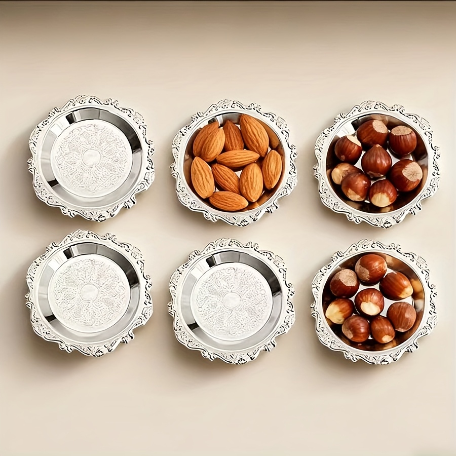 TEMU 6개 세트 튼튼한 메탈 트레이 | 건조 과일, 컵케이크, , 야채, 견과류에 적합 | 주철, 광택 금속 마감, 꽃 테마, 접촉에 이상적