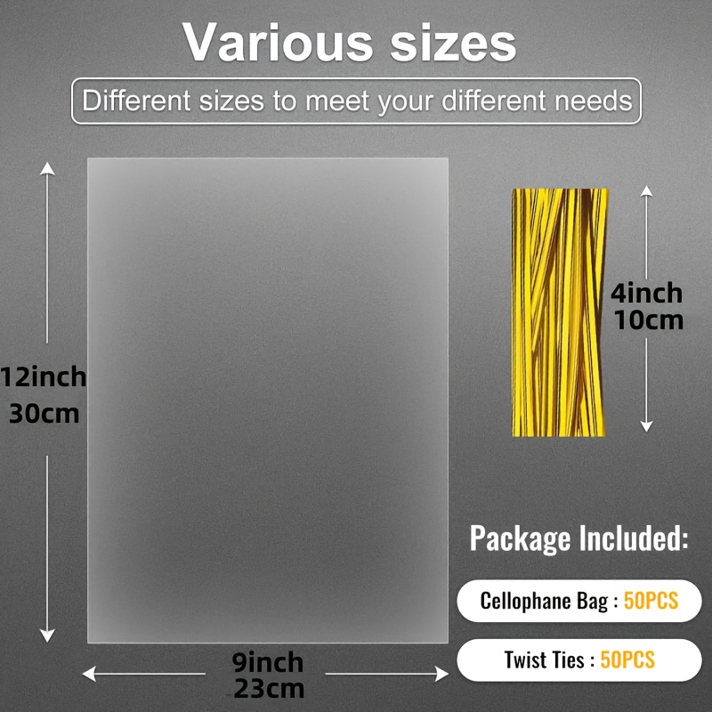 TEMU 50개 투명 셀로판 선물 봉투 – 식품 안전, 비독성 플라스틱 포장, 타이 포함, 쿠키, 사탕, 제과 선물에 이상적인 투명 파티 선물 봉투
