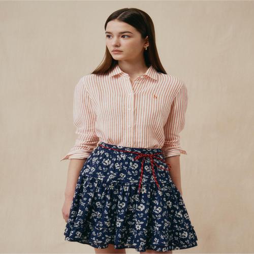 헤지스 여성 오렌지 스트라이프 린넨 셔츠 HSSH5B310O2