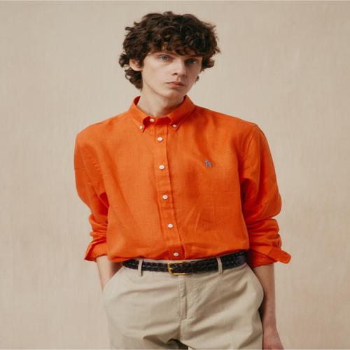 헤지스 남성 [아이코닉] 오렌지 린넨 셔츠 (HZSH5B301O2)