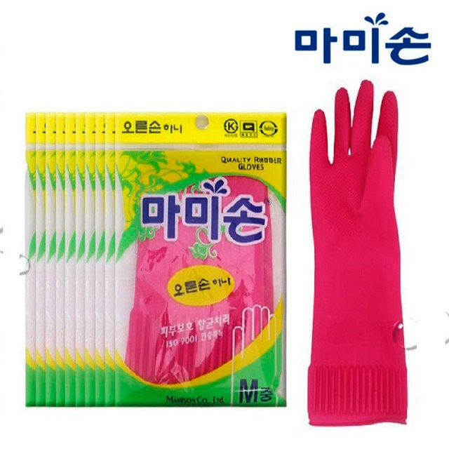 주방고무장갑 마미손 고무장갑 오른손 하나 M(중)x10켤레 한손고무장갑 HWC991E9