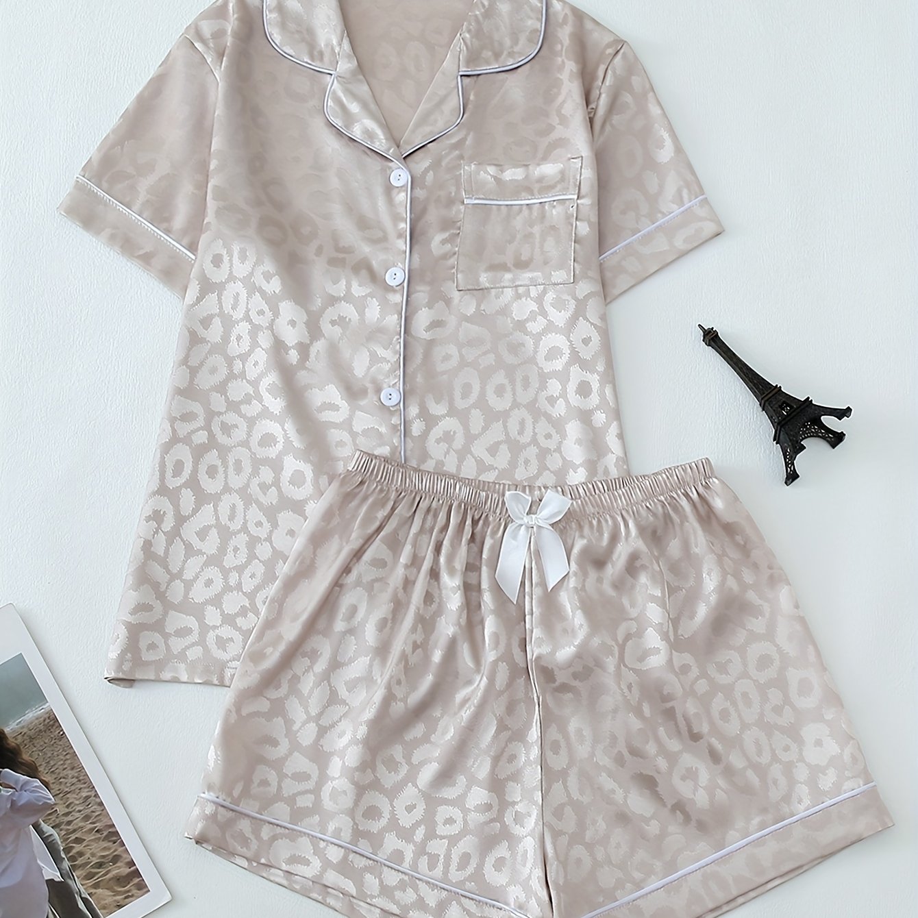 TEMU 여성용 자카드 새틴 편안한 버튼업 세트
