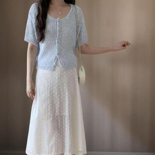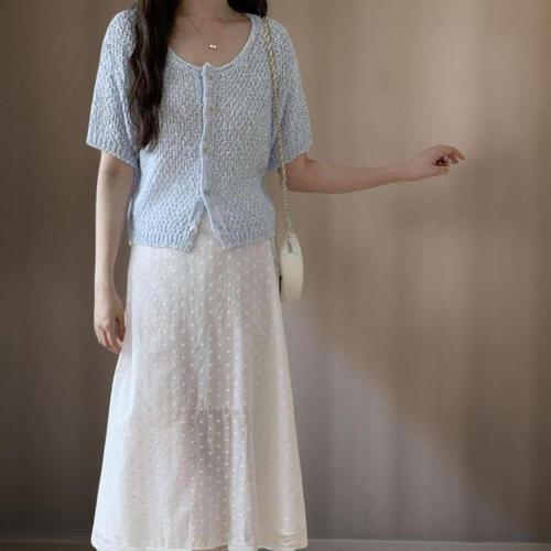 [신상오픈런]여성 여름 부클 오버사이즈 짜임 라운드넥 반팔 니트 가디건