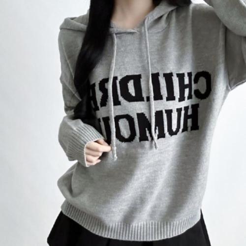 [옷자락]여성 레터링 오버사이즈 후드 니트 캐주얼 데일리