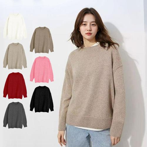 히르시온산 기본 O넥 기본 소매 스웨터 여성용 2025 오버사이즈 숏 니트 울 풀오버 여성 캐주얼 두꺼운 따뜻한 부드러운 탑