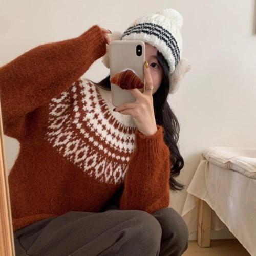 [옷자락]여성 오버사이즈 노르딕 라운드넥 니트