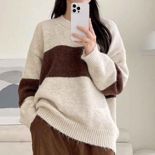 나야홍 / 아이우먼 블럭배색울오버니트티 ITT061M512 빅사이즈