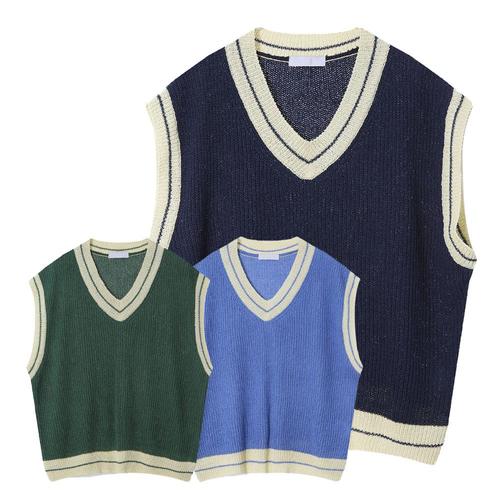 남자 간절기 오버핏 배색 브이넥 니트 베스트 AC-VES-Q014-소라