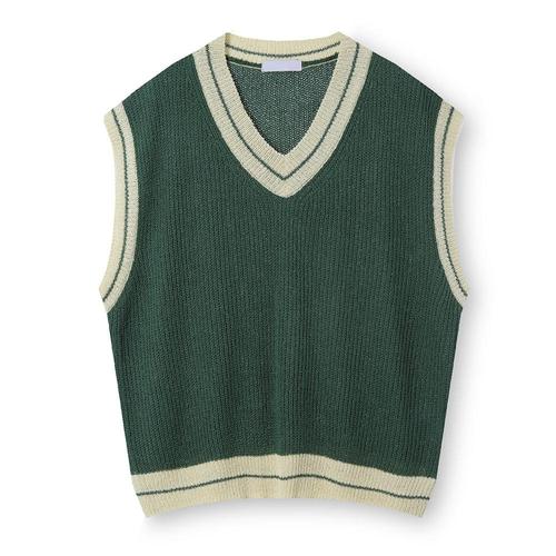 남자 간절기 오버핏 배색 브이넥 니트 베스트 AC-VES-Q014-그린