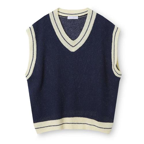 남자 간절기 오버핏 배색 브이넥 니트 베스트 AC-VES-Q014-네이비