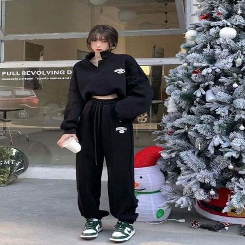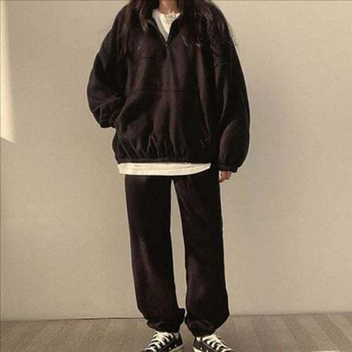 [오너클랜]인기상품 기모 여성 트레이닝 세트 반집업 여성 조거 팬츠 세트 오버핏 [WFLHOZ2_260208]