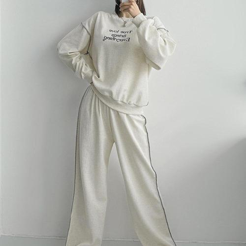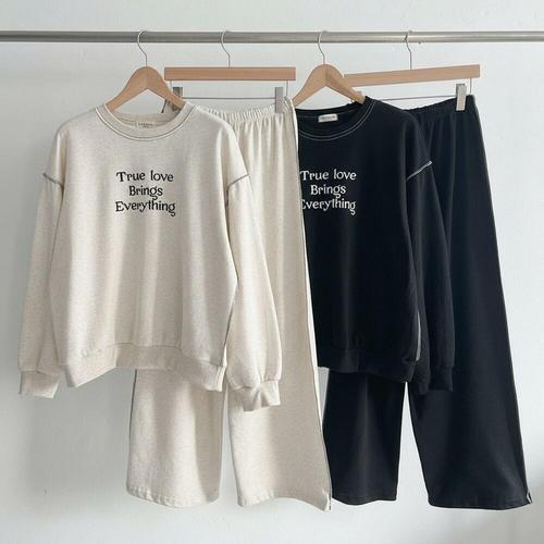 TE 면혼방 루즈핏 간절기 데일리 홈웨어 어깨트임 와이드팬츠 봄 맨투맨 트레이닝세트