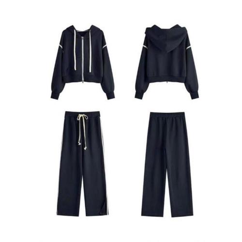 [신상오픈런]여성용 루즈핏 크롭 후드집업과 와이드 트레이닝 팬츠 세트 (46120421)
