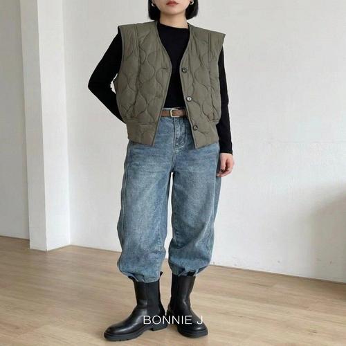 [보니제이]겨울 여성 누빔 베스트 브이넥 스냅 버튼 루즈핏 패딩