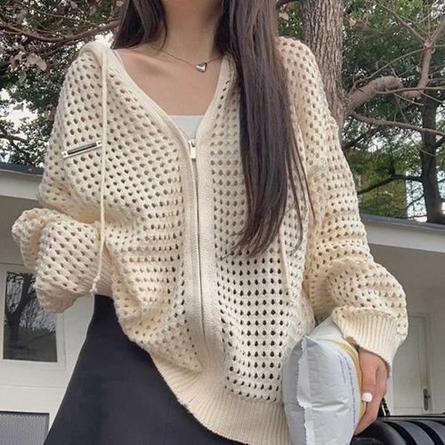 [엄지척]루즈핏 펀칭 패턴 후드 긴팔 여성 가디건_19798828_667501