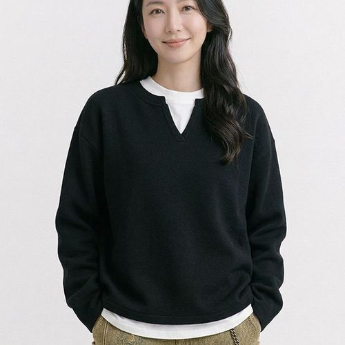[에스티코]레이어드 슬릿넥 긴팔 티셔츠_아이보리 (세미오버핏)_STSXA01NSI