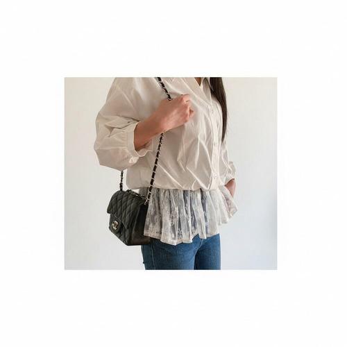 [미라클세븐]여성 루즈핏 면 레이스 밑단 레이어드 카라 블라우스