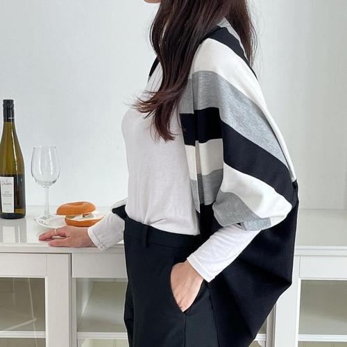 [다잇템]여자 레이어드용 박스핏 줄무늬 가디건 (10546923A)