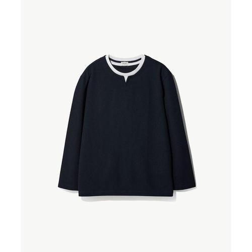 [에스티코]레이어드 슬릿넥 긴팔 티셔츠_네이비 (세미오버핏)_STSXA02NSN