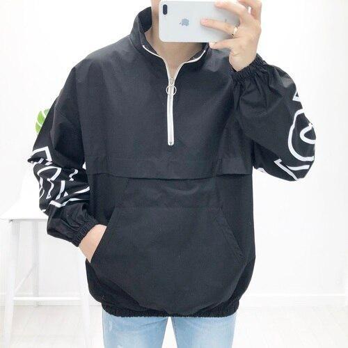 [맨커버]오버핏 레터링 프린팅 나염 반집업 아노락 바람막이