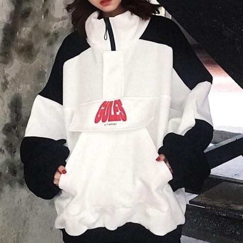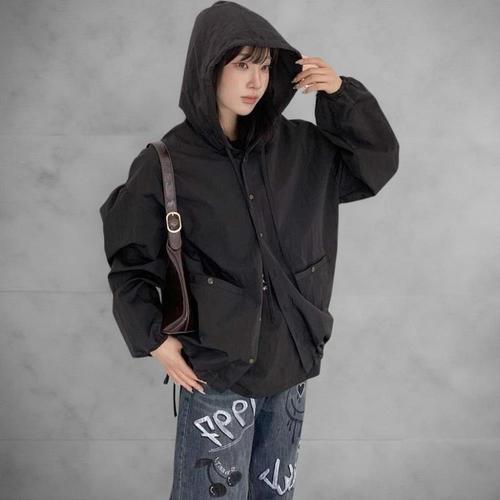 [신상오픈런]여성용 하이넥 오버핏 후드 바람막이 탈부착 가능 캐주얼 자켓