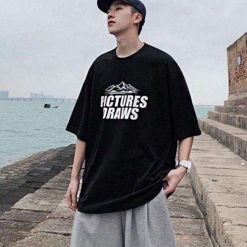 남성용 라운드 반팔 티 영문 프린팅 브이넥 오버핏 무지 반팔티셔츠 WFLMFHK