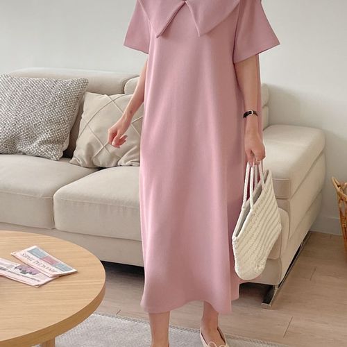에르디테 / 러블리 빅사이즈 카라 루즈핏 브이넥 반팔 롱 원피스