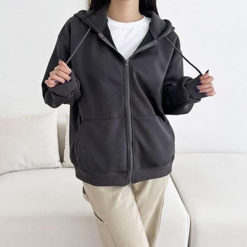 여성 캐주얼 오버핏 긴팔 후드 집업 맨투맨