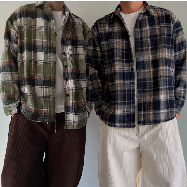 가을 체크무늬 루즈핏 긴팔 여성 셔츠 빈티지 스타일 스트리트 패션 면 소재 버튼 클로저 이너웨어