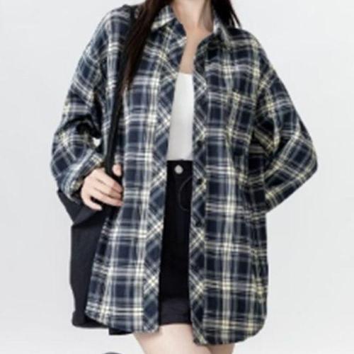 [에이치플러스몰]겨울 여성 체크 셔츠 체크 남방 자켓 코트 하객룩 오버핏