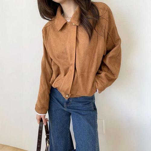 [옷자락] 여자 캐주얼 스웨이드 루즈핏 절개 카라넥 자켓