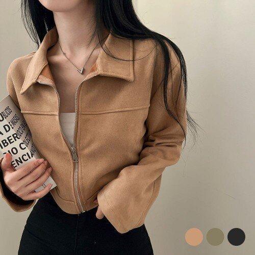 Latium HC06 크롭 루즈핏 스웨이드 세무 라운드 집업 쟈켓형 이브 점퍼 T2533jp14DG