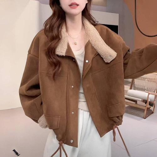 후드뽀글이 스웨이드자켓 여성숏코트 양털무스탕 오버핏 가을 재킷 루즈핏