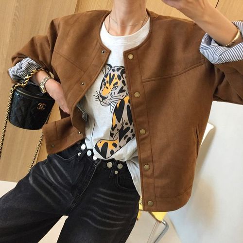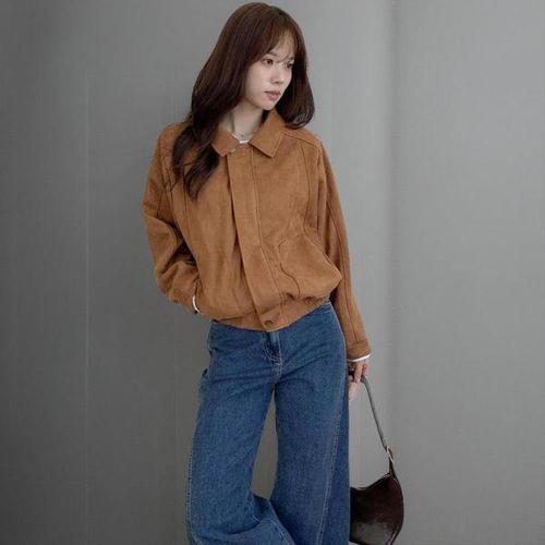 [신상오픈런]여자 캐주얼 스웨이드 루즈핏 절개 카라넥 자켓