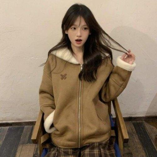 여성 스웨이드자켓 양털 카라넥 루즈핏 양면 뽀글이