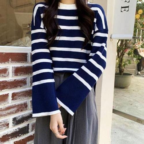 [셀러허브_여성트랜드패션]ONM 단가라 스트라이프 니트 긴팔티 루즈핏 배색 여성