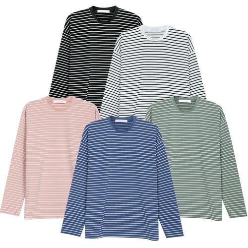 [모로엠]남성 국내제작 데일리 오버핏 스트라이프 긴팔티 5C-TSA-Q090