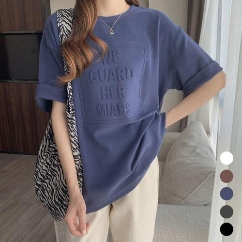 [엄지척]여성 엠보 레터링 라운드넥 오버핏 여자 반팔 티셔츠_19610415_667501