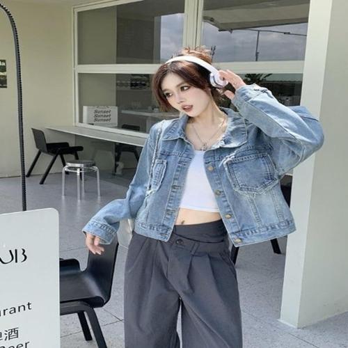 스티치 짧은 숏 크롭 청자켓 루즈핏 데님자켓 여자 WFLPTOT