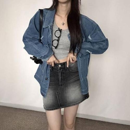 [엄지척]여자 루즈핏 디스트로이드 찢어진 청 데님 자켓_20361429_667501