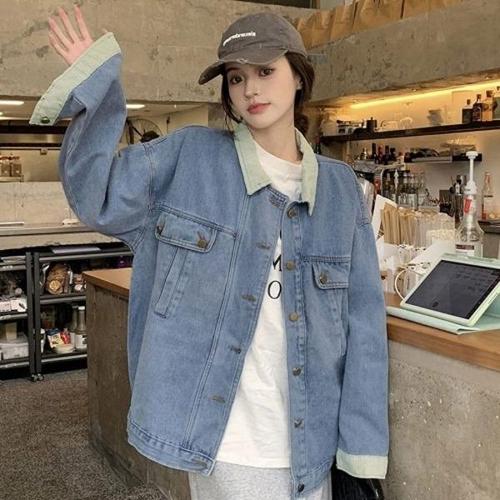[엄지척]오버핏 카라 배색 여자 캐주얼 데님 자켓_20361545_667501