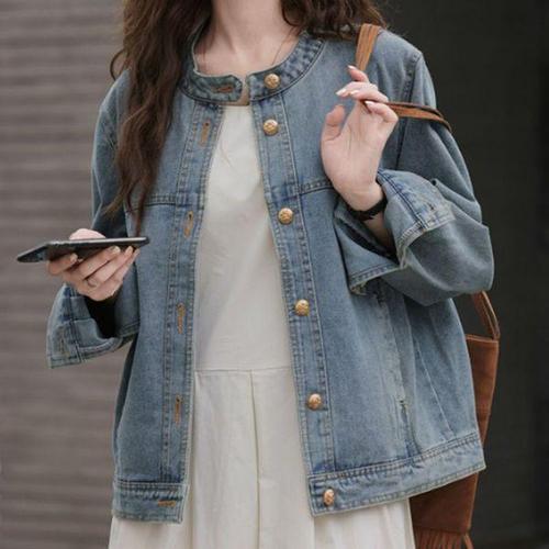 [신상오픈런]여성용 루즈핏 크롭 데님 자켓 더블포켓 트렌드