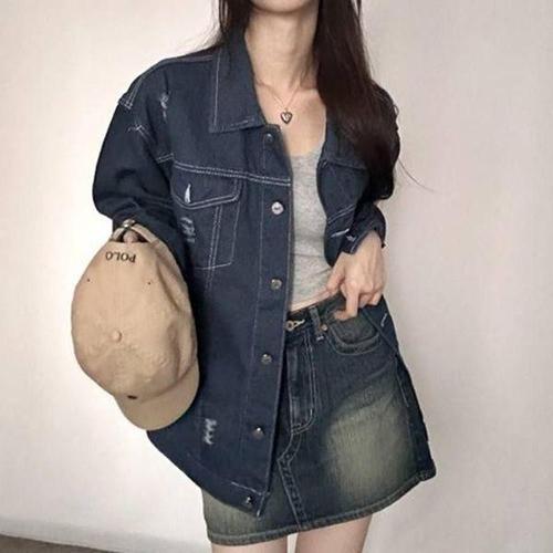 [에이치플러스몰]데님자켓 여성데님 루즈핏 선물 자켓 캐쥬얼 봄 데님