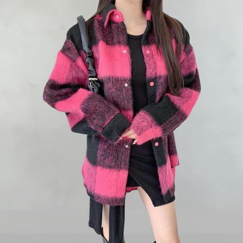 [옷자락]여성 대형 체크 디자인 퍼 스타일 오버핏 재킷
