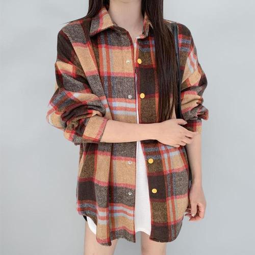 [옷자락]여성 루즈핏 컬러 블록 체크 패턴 일상 셔츠 자켓